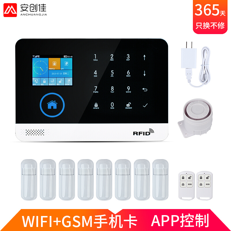 防盗报警器家用红外线人体感应小偷窗户门窗防盗无线wifi智能GSM主机店铺商用远程远距离安防报警系统 主机1+红外8+遥控2 自营